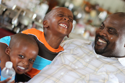 While at a family reunion, I spotted a joyful exchange between my uncle and his sons. Fathers don't often get recognition for how much they love and nurture their children. There was something ebullient about their smiles and giggles. So I snapped several photographs at various angles.